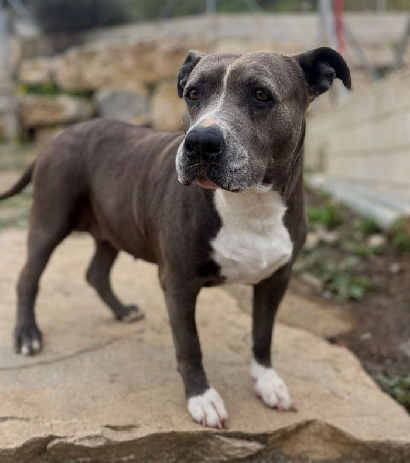 Bella is een prachtige American Stafford van 6 jaar, met een zilveren vacht en een vriendelijke inborst. Al vier jaar verblijft ze bij ons in de refugio; véél te lang voor zo'n lieve, dappere ziel.