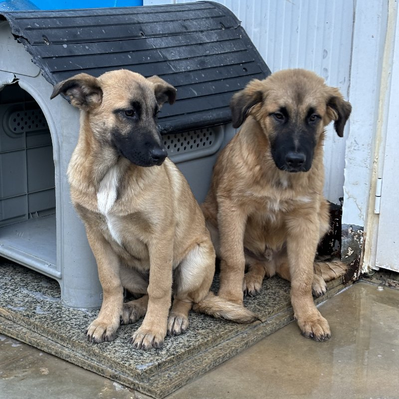 Terwijl ze in de gangen rondliep, hoorde Tanya iemand zeggen dat hij twee pupjes wilde meenemen voor zijn campo, om aan de ketting te liggen en te waken. Dat is natuurlijk hoog alarm, en vraagt per direct actie. We haalden ze er snel uit, "sorry - ze waren gereserveerd voor ons", en zo hebben we deze twee lieve schatten op de valreep kunnen redden van een triest leven aan de ketting. Gelukkig!