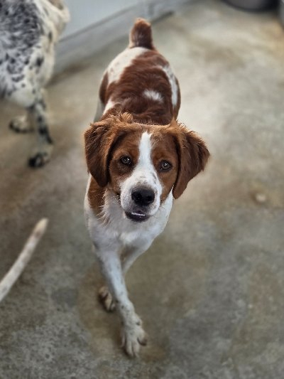 Deze prachtige breton werd gered uit een dodenstation. Een mooi en goed hondje, dat een goed gezinshondje zou zijn. Bretonnetjes zijn erg actief en hebben beweging nodig, rennen, wandelen, bos in snuffelen, maar ook lekker bank liggen als ze lekker even weg waren. Nestor is een sociale goede kanjer, een heerlijke knuffel, een toffe kapoen. Wie zo een hondje zoekt, moet niet twijfelen maar hem en jezelf gelukkig maken.