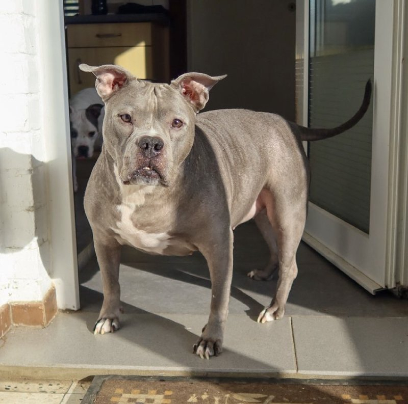 Seika is een middelgrote hond (American Bully): zij is ca. 44 cm hoog en weegt ca. 17 kg.