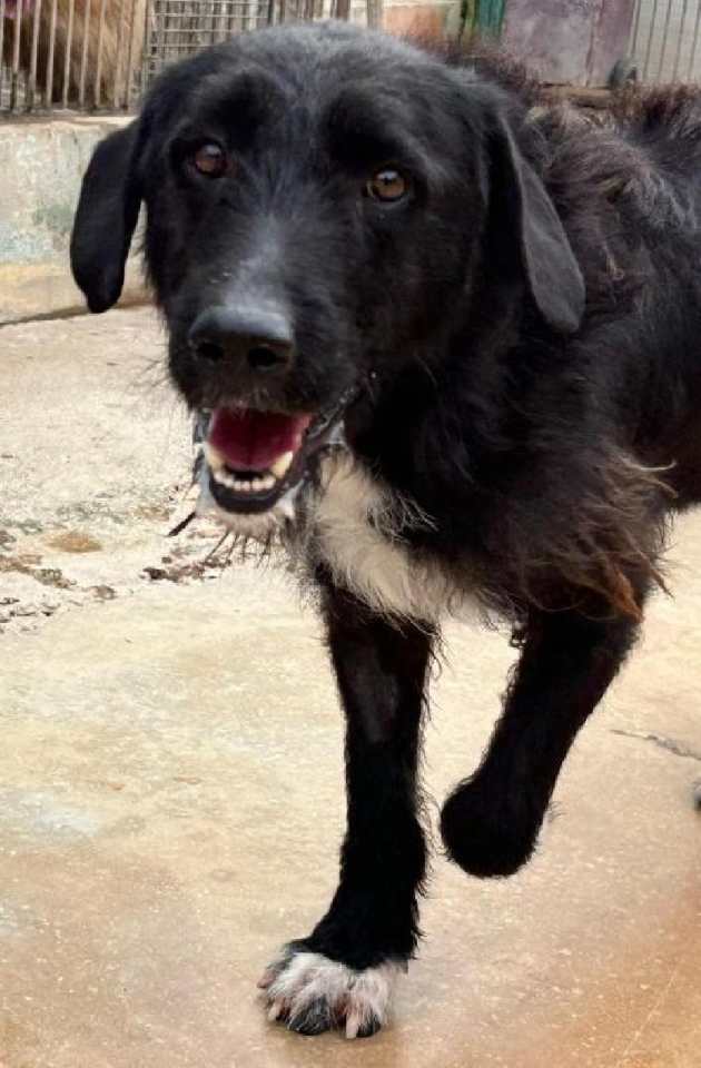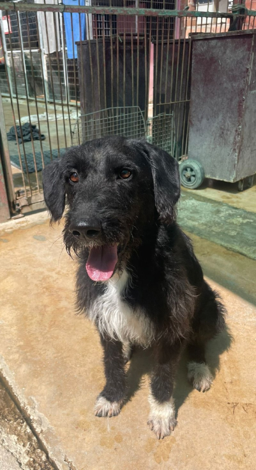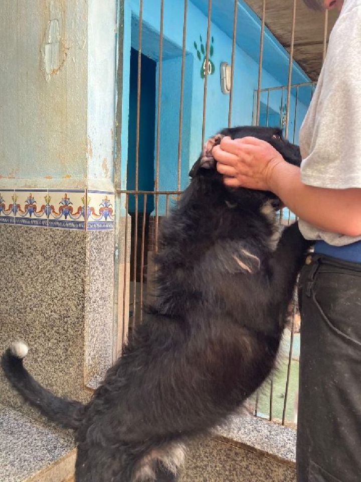 We haalden deze mooie jongen uit een van de vele dodenstations. Hij stond op de lijst om te worden ingeslapen. Een eenvoudig hondje zonder op te vallen, wat ruwharig, zwart, kansloos hier in dit land.