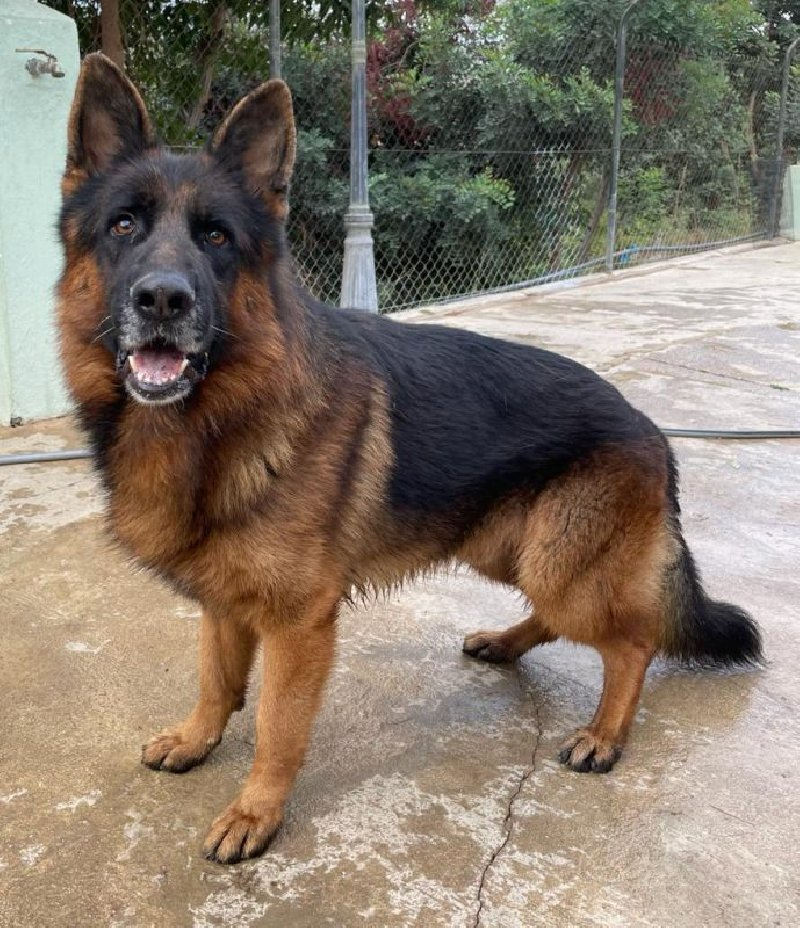 Romeo is een grote hond (German Shepherd): hij is ca. 65 cm hoog en weegt ca. 34 kg.