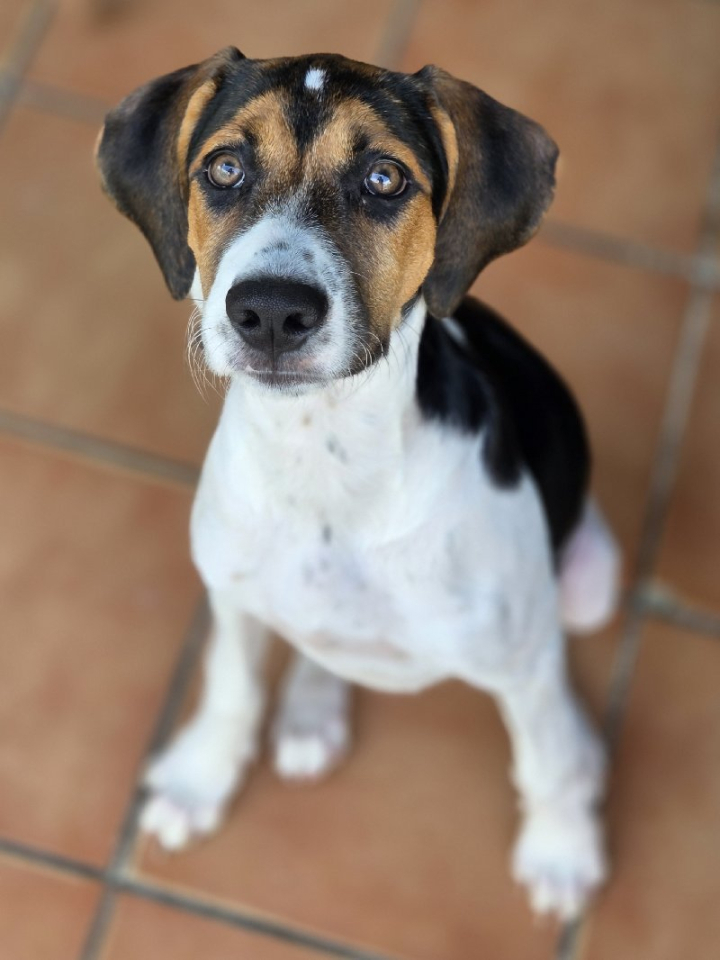 Volgens haar (ex-)baasje begrijpt ze goed neen, kan ze zitten en liggen op commando, ze geeft ook al een pootje. Haar grootvader zou een Bodeguero zijn, haar mama een Breton, en haar papa een Herder. Dat is de info die we kregen.