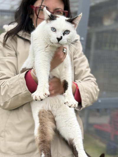 Bellezon is echt een prachtige kater. Zijn mooie blauwe ogen en bijzondere tekening op zijn vacht, maken hem een apart katje om te zien. Bellezon is samen met zijn zus bij onze foster gekomen. Met tijd en geduld zal Bellezon je leren te vertrouwen en een lief maatje zijn. We zien hem wel graag met een soortgenootje samen. Dus een andere kat in huis is wel een wens.