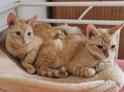 Jonnhy en Jimmy werden van de straat geplukt nadat hun mama een niet meer kon verzorgen. Het waren straatkatjes die verzorging nodig hadden, dus nam een opvanggezin hen in huis. Het zijn twee super aanhankelijke spinnertjes, maar ze zijn positief aan FeLV.