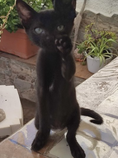 Hij is een voorbeeld voor de vele prachtige zwarte katjes die we ter adoptie hebben. De stempel die ze meekregen, dat zwarte katten ongeluk brengen, klopt allesbehalve, een zwarte poes is net als de vele andere katjes een zegen in huis! Ze zijn gezellige lieve katjes die ook een thuis verdienen bij iemand die van katten houdt!